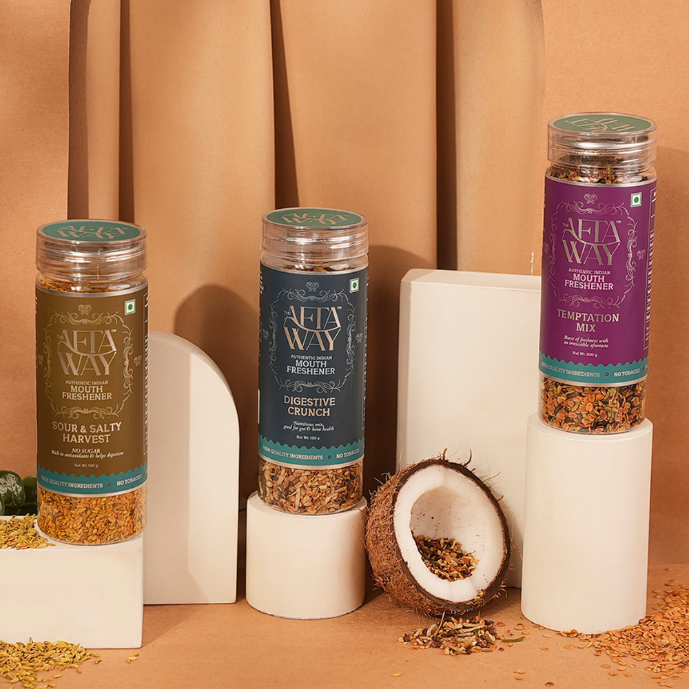 Mukhwas has always been more than just a mouth freshener — it’s a symbol of warmth, hospitality, and the little joys that follow a good meal. At AftaWay, we honour this heritage by crafting blends that are rooted in authenticity and elevated by attention to detail. Every ingredient is carefully selected, and every mix is thoughtfully balanced to deliver an experience that’s as satisfying as it is memorable.
