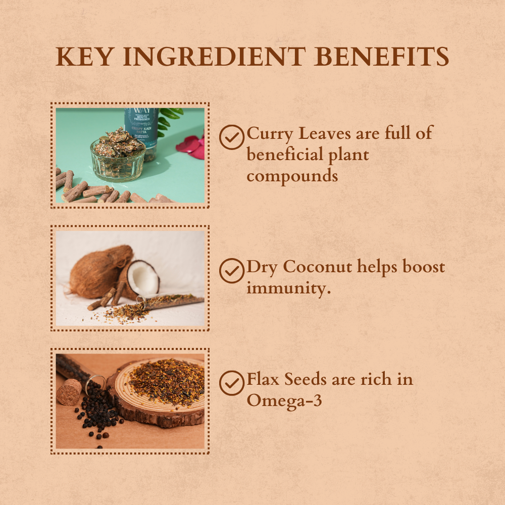 Dry Coconut, Jethimadh Powder, Fennel Seeds, Coriander Seeds, Sesame Seeds, Hari Patti, Curry Leaves, Gulkand, Mixed Seeds, Flax Seeds, Dry Mango Seeds, Black Pepper, Rock Salt, Cumin Seeds