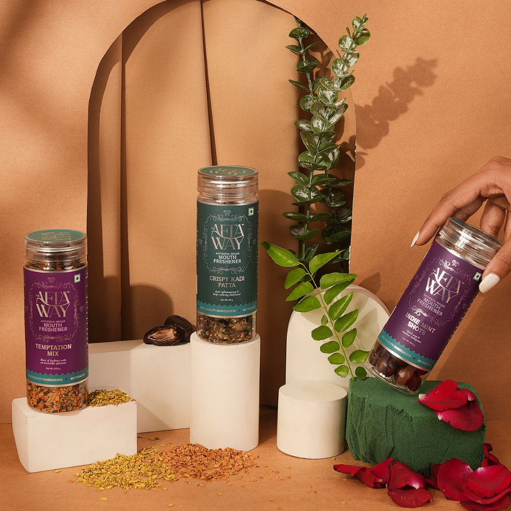 Mukhwas has always been more than just a mouth freshener — it’s a symbol of warmth, hospitality, and the little joys that follow a good meal. At AftaWay, we honour this heritage by crafting blends that are rooted in authenticity and elevated by attention to detail. Every ingredient is carefully selected, and every mix is thoughtfully balanced to deliver an experience that’s as satisfying as it is memorable.