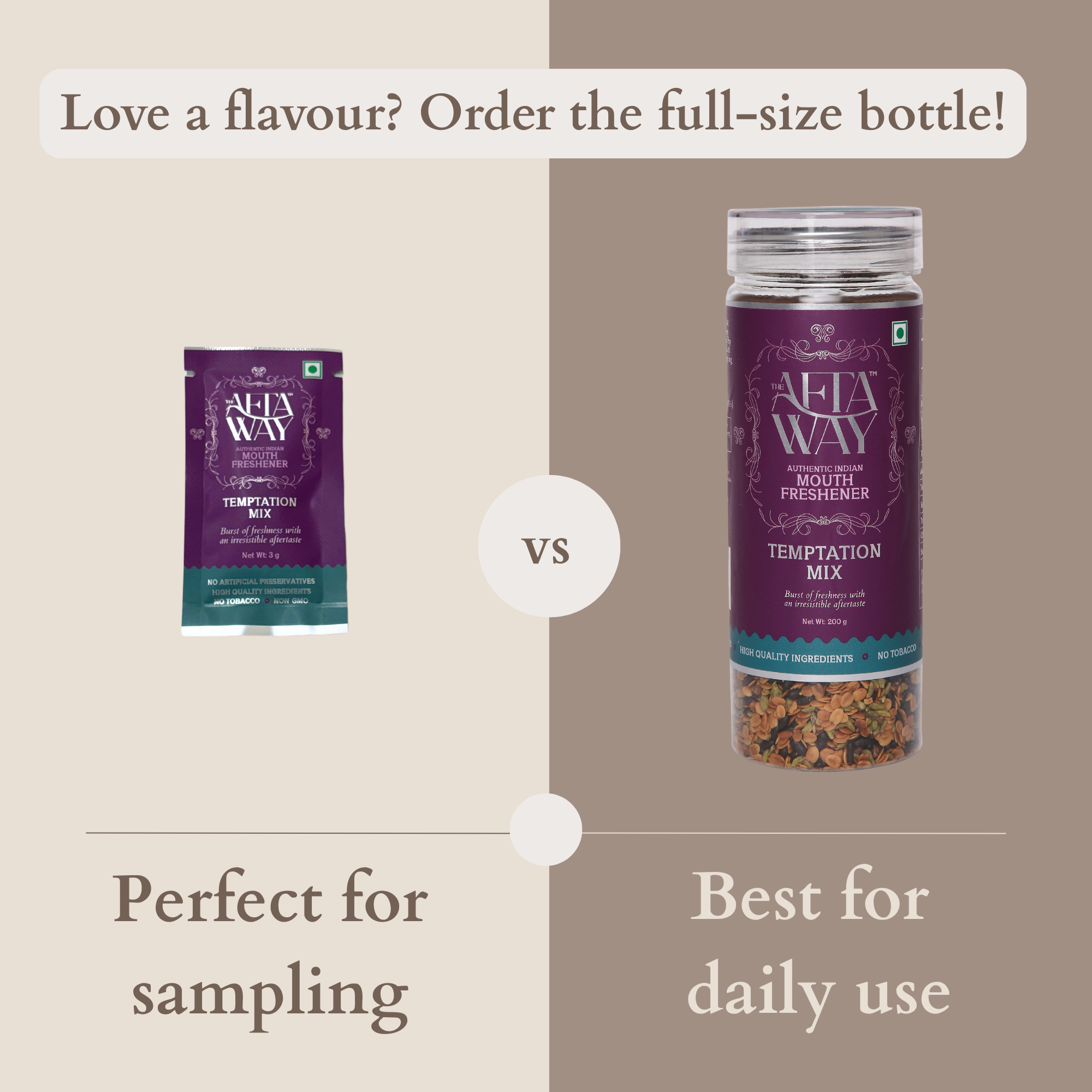 Mukhwas has always been more than just a mouth freshener — it’s a symbol of warmth, hospitality, and the little joys that follow a good meal. At AftaWay, we honour this heritage by crafting blends that are rooted in authenticity and elevated by attention to detail. Every ingredient is carefully selected, and every mix is thoughtfully balanced to deliver an experience that’s as satisfying as it is memorable.
